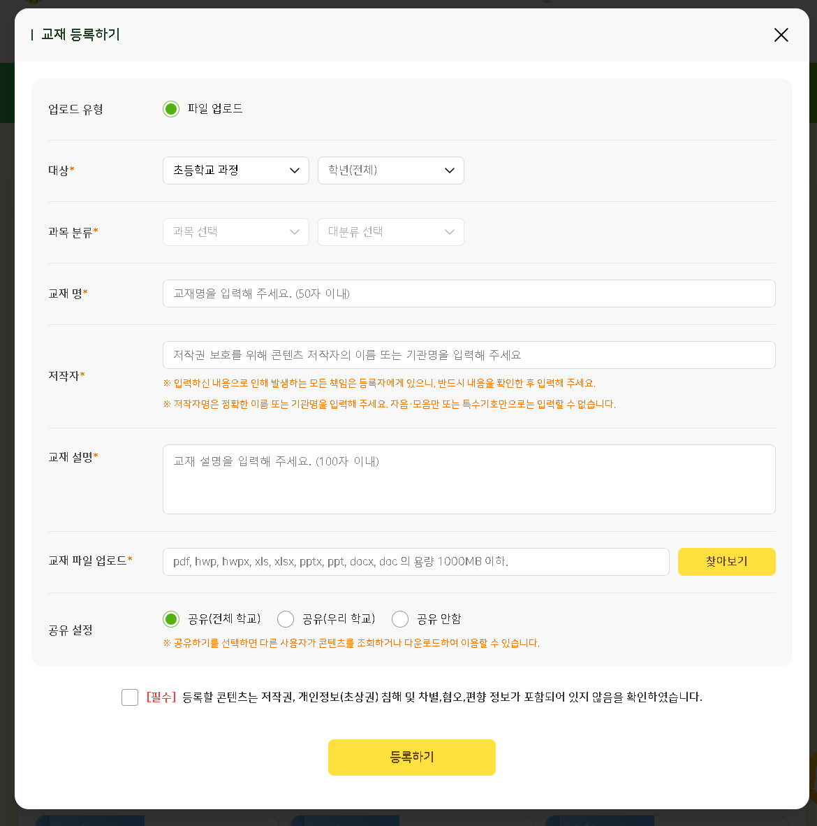 영상 등록하기/교재 등록하기 하단 필수 부분에 텍스트 추가 사항 반영이 되지 않아 reopen 하겠습니다. |